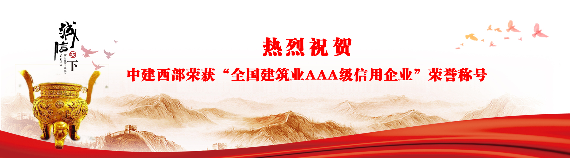 誠信筑基鑄精品 匠心賦能促發展 近日,中建西部(安徽)建設工程集團有限公司憑借卓越的企業信用表現,榮獲安徽省建筑業協會頒發的“企業信用評級AAA級信用企業”證書。該榮譽是安徽省建筑業信用評價體系的最高等級...